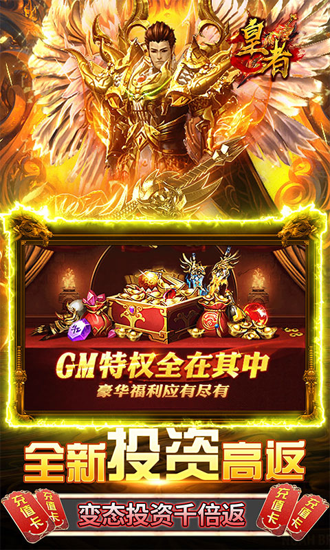 后缀说明:游戏内置”gm特权“和“爆充值卡”活动每日领取大量的真充值和海量资源;