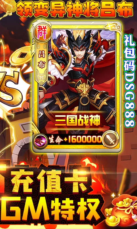 2、输入礼包码dsg666、dsg888,免费领取变异神将·吕布、时装·梦幻家仆