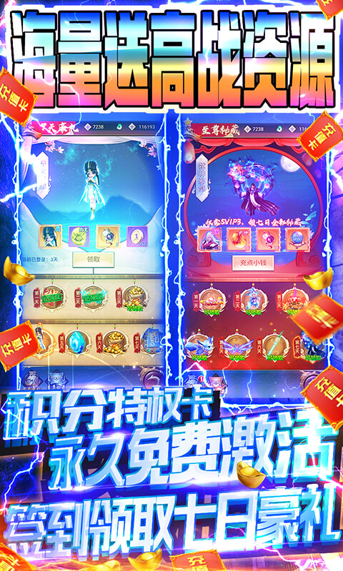 1.充值卡无限送,登录免费赠svip2,次日svip6,十日svip10,免费满svip不是梦