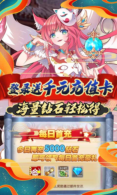1、登录送千元充值,七日登录活动领取海量抽卡卷,极品红色英雄以及千元充值卡(七日登录活动)