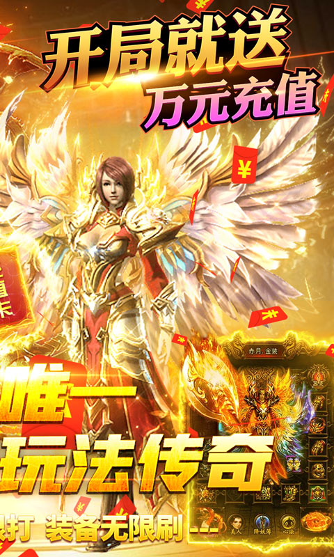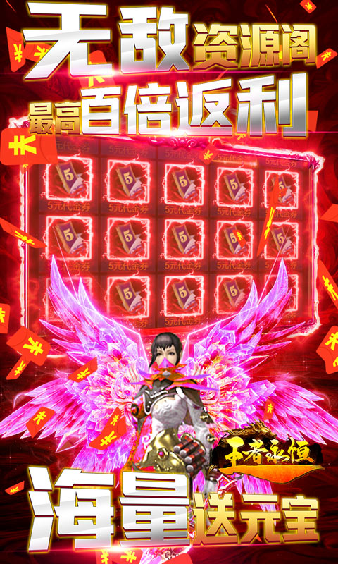 《王者永恒》(送万元充值)是全网唯一一款36转玩法的传奇动作手游! 上线送满vip10,绝版暗影时装套,酷炫开局!万元充值卡创角就送,每日登录又送充值卡,福利多到爆炸! 全新36转boss副本,打不尽的boss,爆不完的元宝,让您沉醉其中!跨服散人天堂自由pk,转生修为无限免费爆!打造福利最强最激爽的传奇新体验!等你来战!