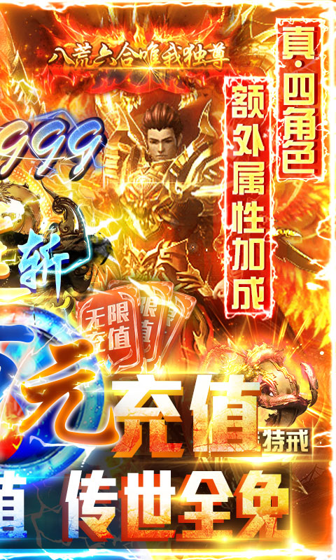 1.上线即送10000元充值券,元宝38888,金币9999万,vip20。