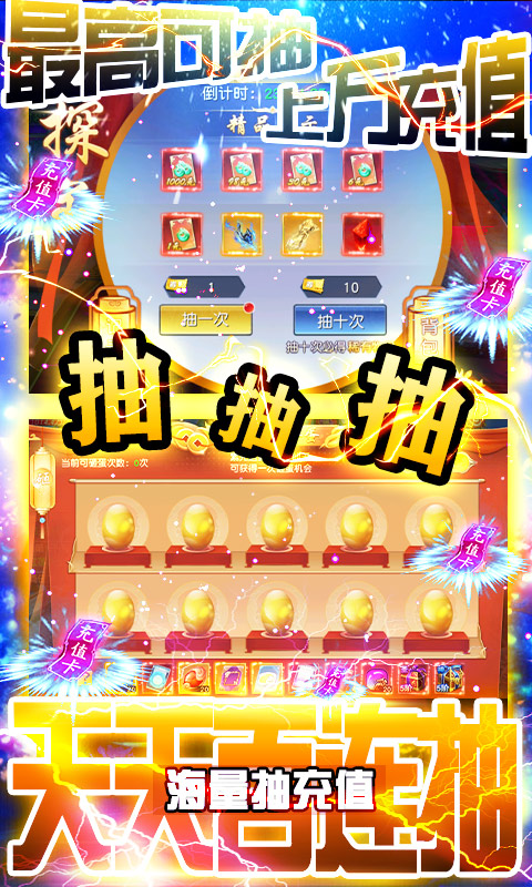 5.天天百连抽,无限抽充值卡!独占鳌头的仙侠mmo手游丰富的主线剧情、纯正的萌妹子配音、火爆全球的pk玩法,仙女手把手教你pk,开启全民大吉大利今晚pk的狂欢盛宴!