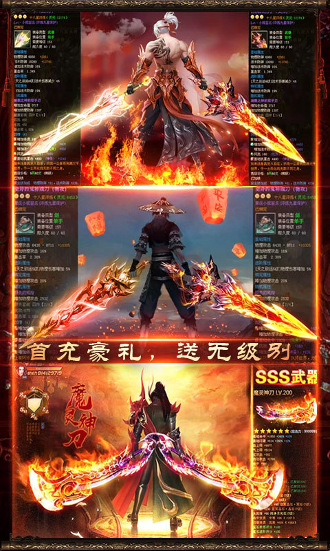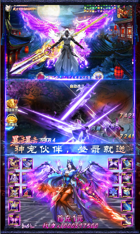 2.充值比例1:100 ,首充送无级别神器,超强伙伴,还可获得10倍元宝