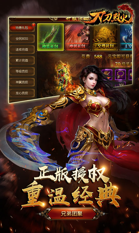 刀刀烈火最热血复古的指尖手游,经典战斗沙城燃烧的岁月,玛法大陆东方的魔幻世界。广阔地图探索更多的宝藏,立马横刀将敌人全部斩于马下,坐骑神兵唾手可得!