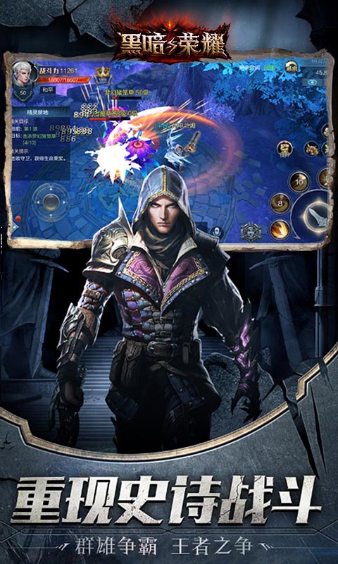 《黑暗与荣耀》全新版本、全新玩法、全新体验,定义3dmmo动作手游新纪元!游戏采用unity3d引擎技术搭配原创音乐呈现殿堂级视听,为玩家打造了一个充满欧美魔幻元素的暗黑异世界。全放开式即时pk遭遇战,让你随时随地,爽快暴击!公会领地争夺、跨服boss战,让你畅享与好友共千人团战的热血激昂!千种霸气状态自由切换,神魔附体技能华丽扫荡,暗黑魔幻世界等你来征战。