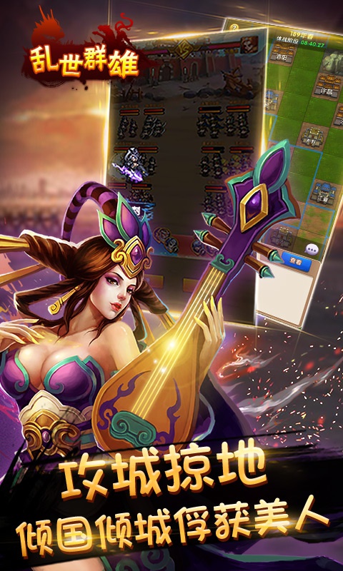 《乱世群雄》是2018首款经典三国策略手游!集放置经营、策略国战于一体,完美的将领养成体系,庞大的卡牌对战系统,随意的武将组合设定,新颖的皇城pk模式,为您呈现引人入胜的游戏体验!屯田、募兵、起城池,攻城、略地、平四方,24小时不间断采集资源,告别传统枯燥无聊的slg游戏玩法,享受全新的战斗与掠夺模式!群雄兵戎沙场见,万人攻城美名留!承袭三国经典,再现王者雄风!