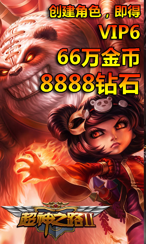 创角即送66万金币,8888钻石,vip6 充值比例1:200
