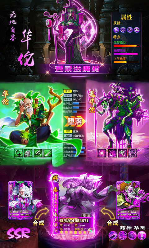2、首充送顶尖资质传世神将-华佗,天生与众不同,超凡脱俗